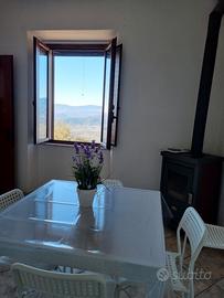 E' suddivisa in un appartamento al primo piano con cucina abitabile, camera matrimoniale, camera con letto a castello e bagno con doccia. E' presente un piccolo balconcino con vista.
