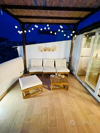 L'alloggio interamente ristrutturato è composto da un ingresso su ampio disimpegno , camera da letto matrimoniale con balcone , bagno con doccia idro massaggio. Living con Cucina abitabile e terrazzo con vista panoramica sul golfo di Castellammare nella quale oltre a rilassarsi si può comodamente anche pranzare , fare aperitivi e/o un barbecue al tramonto. , L'appartamento è dotato di smart tv , wi-fi gratuito, condizionatori , biancheria e asciugamani , cucina attrezzata, barbecue.