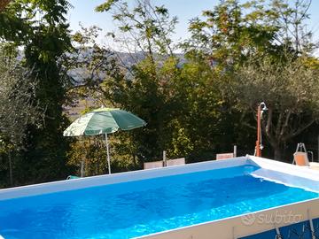 ll casale, in cima a una collina di 300m. nel comune di Colli al Metauro (PU), è immerso in un'area verde, ricca di vegetazione, adatto per una rilassante vacanza in un ambiente tranquillo e fresco. Ottimo per festeggiare compleanni o per pranzi o cene con amici sia all'interno, nel soggiorno, sia all'esterno, nel giardino. E' disponibile una piscina fuori terra di m.5,30x2,8 ( aperta dal 1 giugno in poi), in un'area recintata con sdraie, doccia , ombrellone, tavolo e sedie.ad uso esclusivo di questa casa Possibilità di escursioni: , facilmente raggiungibile grazie alla SUPERSTRADA, sul mare Adriatico, la SPIAGGIA di FANO, bandiera blu per le sue acque pulite. Nel raggio di pochi km. paesi medioevali arroccati su colline, come Montemaggiore al Metauro, Orciano, Mondavio, Cartoceto, Fratte Rosa. A 35 km. Urbino con il Palazzo Ducale, a 40 km Gradara, a km. 60 San Marino, a 65 km. Gubbio; a 80 km.le spettacolari GROTTE DI FRASASSI Il casale di mq 100 (per 5/6 persone) è indipendente e dispone di lavatrice, di lavastoviglie , di TV satellitare (no sky),di Wifi , di riscaldamento (GPL), di barbecue, di mobili da giardino e di giochi per bambini La casa si sviluppa su due piani. Piano terra: ampio soggiorno-pranzo con angolo cottura, camino, divano, poltrone ed accesso al giardino (L'angolo cottura dispone di : forno, 4 fuochi, lavastoviglie, frigorifero con congelatore, pensili e mobili). Primo piano: zona notte: 2 camere matrimoniali, camera singola, bagno con vasca. I cani sono ammessi, ma di piccola taglia,e occorre darne comunicazione ( euro 6 al giorno cadauno) Disponibilità: affitto per feste per una giornata dalle 9 alle 22 in aprile maggio e settembre euro 250, eventuale successivo pernottamento (max 6 persone) euro 120 a notte. Per il primo maggio euro 300. Affitto per famiglie di 4/5 persone euro 150 al giorno , minimo 2 notti. Pulizie finali euro 70. Deposito cauzionale euro 250 da rendere dopo la partenza, previo controllo della casa.