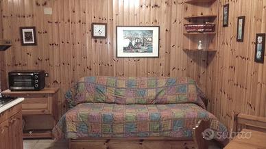 Casa per le vacanze a Campo di Giove nel Residence Maiella composta di soggiorno con camino e angolo cottura accessoriato, camera, cameretta bagno e ampio balcone panoramico con legnaia.