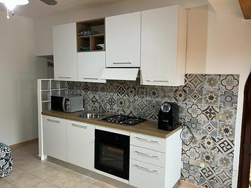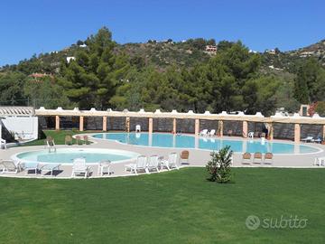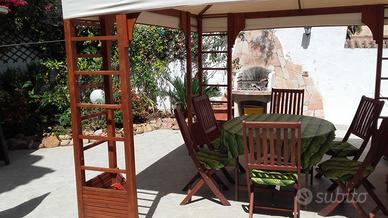 CAPO BLU - Santa Margherita di Pula (CA) a pochi minuti dalle spettacolari spiagge di Chia, affittasi porzione di villa indipendente di 120 mq con 50 mq di terrazza attrezzata ; la casa è situata all' interno del Complesso Residenziale "Capo Blu" dotato di due splendide piscine attrezzate, campo da tennis, parco giochi bimbi, custode. La casa è suddivisa in due unità immobiliari indipendenti affacciate su ampia terrazza giardino attrezzata di oltre 50 mq, un trilocale di 80 mq, 5 posti letto, composto da soggiorno con angolo cottura, due camere matrimoniali e un ampio bagno e un monolocale di 40 mq, 3 posti letto, con angolo cottura, zona armadi e bagno ed è adatta ad ospitare più nuclei familiari. L'immobile si presenta in ottimo stato manutentivo interno ed esterno e si completa con la presenza di un comodo barbeque esterno, gazebo, doccia, lavandino e posto auto condominiale.