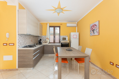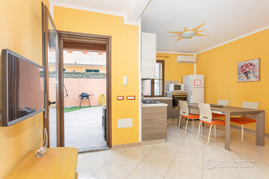 Fantastica casa indipendente sita a Cabras al piano terra composta da: - camera matrimoniale con bagno privato interno completo con doccia - camera matrimoniale - camera con letto a castello - bagno completo con con vasca - soggiorno con angolo cottura - veranda coperta - ampio giardino con barbecue - zanzariere - parcheggio privato. Servizi: aria condizionata in tutti gli ambienti, wi-fi, macchina caffè, forno a microonde, ferro e asse da stiro, lavatrice, asciugacapelli, piastra capelli, cisterna idrica, zanzariere. Su richiesta biancheria L immobile dista dal centro di Cabras 3 minuti a piedi Max 7 ospiti