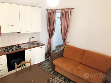 ABITAZIONE SX (foto allegate) Piano rialzato trilocale climatizzato, camere letto matrimoniale + cameretta singola, cucina completa di tutti gli elettrodomestici con posto letto, bagno con doccia. Sul terrazzo è adibita una zona barbecue, tavolo e sedie e lavanderia con lavatrice (uso comune con altro appartamento).