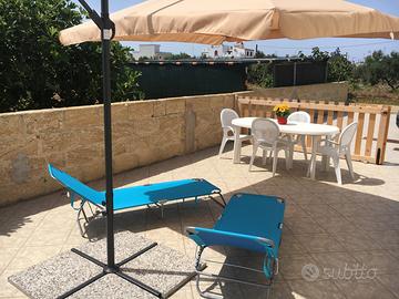 Sul mare del Salento, marina di Alliste (Le) a 200 mt dal mare, appartamento su 2 livelli (zona notte e zona giorno) fino a 5 posti letto; zona notte composta da 2 camere da letto e un bagno completo con un'ampia doccia. La zona giorno composta da open space climatizzato (soggiorno, cucina, sala pranzo e angolo caffè) e un bagno completo con lavatrice. Ampio spazio esterno recintato e parcheggio privato. L'appartamento è servito da AQP.