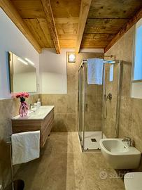 L'immobile é composto da un'ampia zona giorno al piano terra, due camere matrimoniali di ca. 20 mq ciascuna ed un bagno. Completano la proprietà posto auto esterno e altro posto auto coperto.