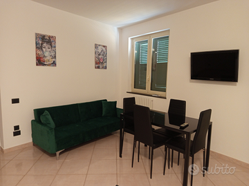 Si fitta per vacanze e o per brevi periodi intero bilocale + bagno composto da angolo cucina attrezzato, soggiorno cucina con divano (lettino singolo), camera da letto matrimoniale con armadio 4 ante, bagno con doccia e lavatrice. Aria climatizzata caldo/ freddo, macchina del caffè a cialde.