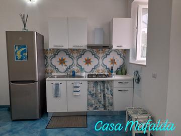 Bilocale composto da stanza principale molto luminosa e ampia con soffitto a cupola e angolo cottura, disimpegno pluriuso con armadio a muro, bagno e balconcino. Appartamento climatizzato con 4 posti letto più un divano da una piazza e mezza. Costruzione di inizio 900 completamente ristrutturata con vista su S. Maria, a circa 5 minuti a piedi (500 mt) da alimentari, bar, forno e ristoranti e 15 minuti dal porto senza bisogno di affrontare salite impegnative.