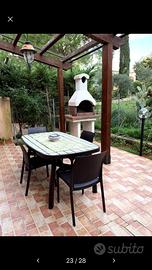 Accogliente e luminosa villetta su due piani ,inserita in un tranquillo complesso di casette a schiera ,a 300 metri dalla spiaggia di macari (raggiungibile anche a piedi ),e a pochi min d'auto dalla spiaggia di San Vito lo capo . Ampio soggiorno cucina ,due camere matrimoniali ,due bagni ,veranda con barbecue ,terrazza