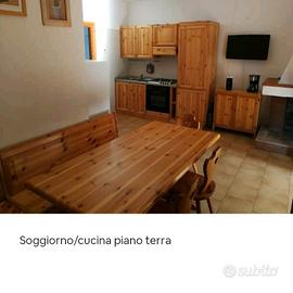 La casa si sviluppa su due livelli. Al piano terra si trova angolo cottura con sala pranzo, camera con due posti letto, camera con quattro posti letto e bagno con doccia.
