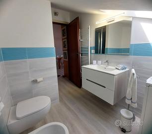 A Viareggio zona città giardino in via fiume 24 a circa 600 mt dal mare in prossimità della vasta pineta, al piano attico un appartamento mansardato con ampia terrazza circa 50 mtq arredata con grandi divani, tavolo da fumo e tavolo da pranzo che da' l'opportunità di vivere una vacanza all'aperto con aperitivi pranzi e cene en plain air. Parcheggio riservato agli inquilini ed agli ospiti dello stabile. Giugno ? 750 Luglio ? 850 Agosto 900-1000 a settimana. Pulizia ? 60. Posti letto 4 max 6. Appartamento composto da 1 camera matrimoniale soggiorno con tavolo da pranzo e 2 divano letto, bagno con doccia e lavatrice. Angolo cottura forno frigo freezer lavastoviglie microonde macchina caffè espresso tostapane bollitore. Ampia terrazza di circa 50 mtq molto curata con fiori e piante gazebo ampli divani tavolo da fumo ideale per aperitivi e tavolo da 6 per cene e colazioni. Aria condizionata. No ascensore