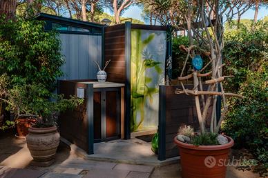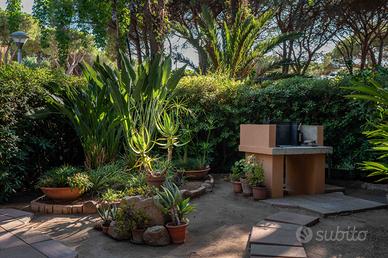 CIN: IT092050C2000S2385 Casa Maria Immersa nel verde, all'ombra dei pini e a pochi passi dal mare. Ideale per una vacanza rilassante e rigenerante. Casa Maria si trova all'interno del residence "La Pineta", in località Santa Margherita di Pula, di fianco al Resort 5 stelle "Forte Village". E' una casa a schiera ben appartata che si affaccia su un ampio giardino recintato e con arredi, luogo ideale dove poter trascorrere piacevoli momenti durante l'intero arco della giornata. Si sviluppa interamente al piano terra ed è composta da soggiorno, cucina attrezzata, camera matrimoniale, camera con letto a castello e letto singolo, bagno, terrazze, patio, gazebo e posto auto nel giardino retrostante. E' dotata di climatizzatori, tv, lavastoviglie, forno elettrico, forno a microonde, lavatrice, barbecue esterno, doccia esterna con acqua calda. Il mare dista 200 metri e si raggiunge comodamente a piedi. La spiaggia è ampia, con sabbia chiara e riva del mare poco profonda; sono presenti strutture per la ristorazione, il servizio noleggio lettini, ombrelloni e piccole imbarcazioni per sport acquatici. All'interno del residence vi è un parco avventura con bar-bistrot e percorsi aerei tra gli alberi. Nel raggio di pochi chilometri potete trovare numerosi ristoranti, pizzerie, supermercati ed altre attrattive come la zona archeologica di Nora, il parco lagunare di Nora, la foresta demaniale Pixinamanna, un circolo velico, un parco acquatico ed alcuni maneggi. Un servizio bus giornaliero collega il residence a Pula, dove sono presenti tutti i servizi cittadini principali. Il residence si trova a 6 km dalle meravigliose spiagge di Chia, 10 km da Pula e 45 km da Cagliari. Non esitate a contattarci per un preventivo, altre foto o qualsiasi altra informazione. Fabio Casti cell: 3342150901