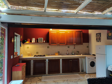 Grazioso e comodo loft,piano terra di una villetta,composta da un monolocale grande(camera da letto e bagno).più patio esterno con cucina coperta,divani, tavolo, frigorifero, lavatrice,aria condizionata.