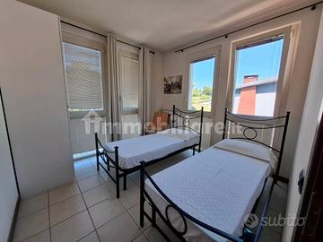 L'alloggio posto al piano primo con accesso solo da scale è di circa 80 mq. dispone di due camere da letto di cui una matrimoniale e l'altra singola, un bagno con sanitari, doccia e lavatrice, una cucina con angolo cottura e soggiorno completo di TV e divano letto, completamente attrezzato di utensili ed elettrodomestici.