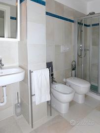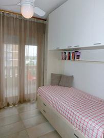 Elegante condominio situato nelle immediate vicinanze del lungomare di Lignano Sabbiadoro, dotato di antenna TV centralizzata, ascensore, giardino recintato, posto auto numerato per ogni singolo appartamento. Negozi di prima necessità, bar, ristoranti, ecc.. si trovano a pochi passi. Il servizio spiaggia non è compreso nel prezzo. Il bagno più vicino all'appartamento è il numero 17 (Leone Marino). Trilocale composto da un soggiorno con cucinino, soggiorno con doppio divano letto, tv, camera matrimoniale, camera singola, bagno con box doccia/bidet/wc ed ampio terrazzo arredato con vista mare laterale. Aria condizionata e pulizie finali sono compresi nel prezzo. Misure posto auto: 5,00×2,30×3,00. Questo appartamento NON e' stagionale. Si accettano SOLO FAMIGLIE, non gruppi di ragazzi. Per ulteriori informazioni e per conoscere le disponibilità vi preghiamo di consultare il sito web dell'agenzia.