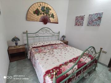 Nella rinomata area del Sinis, casa con due stanze letto, una matrimoniale, con aria condizionata, una con due letti singoli, dotata di ventilatore, cucina abitabile, con ventilatore, arredata con mobili in legno massello, completa di tutto, si potrà godere della vista sul mare seduti a tavola; bagno, balcone panoramico vista mare, dal quale si potranno ammirare stupendi tramonti. Cortile, con spaziosa veranda, dotata di vaschetta per lavaggio a mano e filo per stendere, più stenditoio portatile.