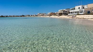 L'appartamento è situato a piano terra, a pochi passi dal mare, a soli 50 metri (reali!) dalla bellissima spiaggia libera che vedete in foto, nel pieno centro di Torre Lapillo.