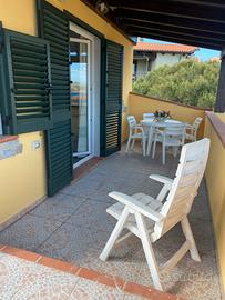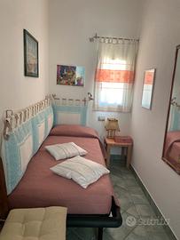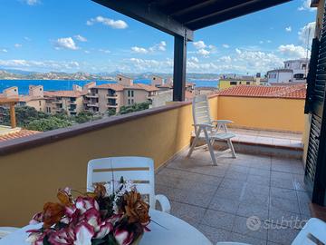 Affitto nell'isola di La Maddalena nel periodo estivo per vacanze, grazioso appartamento di recente costruzione, inserito al primo e ultimo piano di una villetta familiare, composto da soggiorno con angolo cottura, camera matrimoniale, 2 piccole camere con un letto singolo ciascuna, bagno con doccia, grande terrazza (in parte coperta ) con vista sul mare e sull'isola dí Santo Stefano , dove è possibile anche mangiare; dotato di climatizzatori in soggiorno e nella camera matrimoniale.