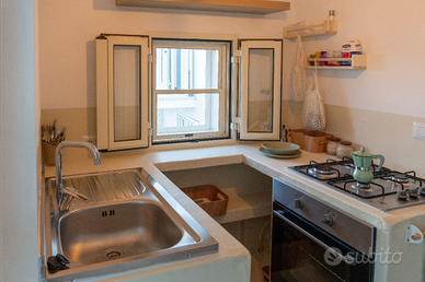 Casa di circa 40 metri con cucina bagno e camera da letto con letto matrimoniale e divano letto matrimoniale. Parcheggio privato e terrazza vista mare. Dista 700 metri dal mare