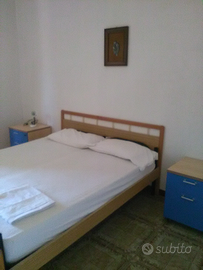 In corso Umberto primo, casa indipendente su due livelli. Al piano superiore camera matrimoniale più letto singolo, cameretta con letto a castello, bagno. Al piano inferiore soggiorno con divano letto, cucinino e bagno con vasca e lavatrice. Aria condizionata. Possibilità di parcheggio sotto casa e tutt'intorno. Dista dalla spiaggia 800 metri a piedi, raggiungibile con comoda scorciatoia.