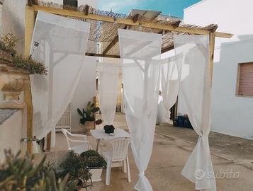 Spazio esterno con Pergolato attrezzato, possibilità di accesso al terrazzo illuminato con angolo frigo, sedie sdraio, tavolino e sedie.