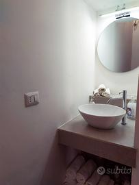 Ampia sala da pranzo con TV, internet, angolo cottura, divano, microonde, bagno con doccia, vano lavatrice, camera da letto con TV condizionatore