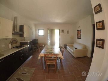 Ampio appartamento in villetta a soli 300 mt dal mare, cucina abitabile e attrezzata, soggiorno con divano letto matrimoniale, 2 camere con letto matrimoniale, totale posti letto 6, 2 bagni, cortile privato