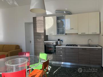 Soggiorno luminoso con divano letto matrimoniale e poltrona letto, perfetto per ritrovarsi dopo una giornata in spiaggia. Cucina attrezzata per preparare pranzi e cene da condividere.