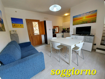 La casa è situata al centro del paese ,è di recente fabbricazione , al piano terra è presente soggiorno cucina , un bagno e l accesso ad un piccolo cortile con una doccietta , al piano superiore presenti due camere da letto con un letto matrimoniale e un letto a castello , un bagno , infine una terrazza coperta con vista mare sull arcipelago De La Maddalena .