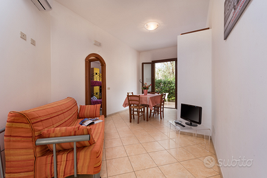Tende parasole sia in veranda antistante che sul giardinetto sul retro
