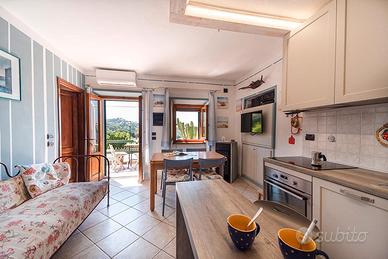 A soli 450 metri dalla caletta di Cotoncello, questo appartamento si trova in una posizione straordinaria, con una splendida vista sul mare e l'atmosfera perfetta per chi cerca relax e tranquillità. Offriamo Tariffe Scontate per il Traghetto! Questa parte dell'isola, ancora selvaggia e autentica, è caratterizzata da splendide scogliere e calette raggiungibili tramite sentieri pedonali, oltre a due incantevoli baie di sabbia: Sant'Andrea e Cotoncello. L'appartamento è situato proprio a Sant'Andrea, nella zona di Cotoncello. Dalla casa, una piacevole passeggiata di circa 450 metri lungo un sentiero pedonale ti porta direttamente alla caletta di Cotoncello. L'appartamento si trova in una villetta bifamiliare, al piano terra rialzato, recentemente ristrutturata con un arredamento moderno e curato nei dettagli. All'interno è composto da un soggiorno con angolo cottura, due camere matrimoniali e un bagno con doccia e lavatrice. Il punto forte di questo appartamento è senza dubbio lo spazio esterno, da cui potrai goderti tramonti spettacolari e rilassarti in totale tranquillità. L'appartamento dispone di un terrazzino privato, ideale per un momento di relax, e ha anche accesso a un'ampia terrazza condivisa con il vicino, che ha il diritto di passaggio per raggiungere la sua abitazione. La terrazza è attrezzata con due tavoli con panche: uno è riservato esclusivamente per l'appartamento, perfetto per pranzare all'aperto e ammirare la splendida vista sul mare. Un altro grande vantaggio è il posto auto riservato, comodo e sempre disponibile. Sant'Andrea è un piccolo borgo balneare molto tranquillo, dove però non mancano i servizi essenziali. A soli 3 km, in località Zanca, trovi due negozi di generi alimentari. Inoltre, a Sant'Andrea ci sono spesso bancarelle di venditori ambulanti dove puoi acquistare pesce fresco, frutta e verdura di stagione. Se invece hai bisogno di un supermercato più fornito, il centro più vicino è Marciana Marina, a circa 15 km.