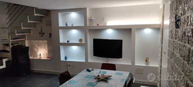 Casa dotata di tutti i confort, con cucina attrezzata, lavasciuga, ampio bagno con doccia grande, soggiorno con tavolo 4 posti, divano, TV e aria condizionata. Salendo sul soppalco troviamo la camera da letto con letto matrimoniale più letto singolo e seconda TV smart e il Wifi. La casa dista 180 m dal mare e dalla zona più bella di Giovinazzo. Negli immediati dintorni ci sono bar pasticceria, tabaccaio, supermarket, panificio, macelleria ecc... possibilitá del posto auto privato.