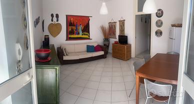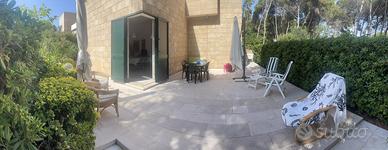 Affitto esclusivamente settimane di settembre casa con giardino e parcheggio in residence recintato e sorvegliato. La casa ospita 4 persone, tutta al pian terreno con giardino esterno. Camera matrimoniale e cameretta, bagno con lavatrice, cucina con lavastoviglie. Tavolo interno ed esterno. Doccetta esterna per la sabbia, aria condizionata. Il condominio ha accesso al mare e spiaggia libera riservato, affiancato su entrambi i lati da stabilimenti balneari con ristorante, bar e pineta. Dista dal centro 15 minuti a piedi, dal mare 3 minuti a piedi.
