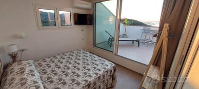 Casa vacanza a Villasimius a 30 metri dal mare, 1,5 km dal centro. Due camere da letto ognuna con bagno di pertinenza, balcone e terrazzo panoramici, area esterna con parcheggio privato. Aria condizionata in tutti i locali. Tutti i servizi. Prezzi e disponibilità su noto sito di affitti. Euro 350/notte al netto delle spese