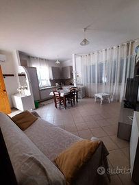 65mq di abitazione composti da due camere da letto, un bagno, cucina e soggiorno con finestre che affacciano sul mare.