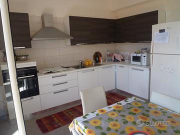 A circa 50 metri dal mare, cui si può accedere con sottopasso adiacente all'immobile, composto da: soggiorno con ampio divano letto , cucina con vista mare ed ampio balcone; due camere da letto con uscita su balcone, letti con doghe in faggio: matrimoniale + due singoli. Arredamento moderno. Cucina con allestimento, forno, fuochi. Ripostiglio e lavanderia. CAPITOLATO Di PREGIO: PAVIMENTO GRESS PORCELLANATO EFFETTO LEGNO - SANITARI SOSPESI, DOCCIA IDROMASSAGGIO.