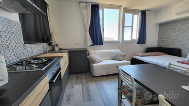 Composto da ambiente open space panoramico e finestrato, climatizzato con samsung windfree. Letto a due piazze con Topper in memory foam, divano letto con due posti.