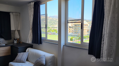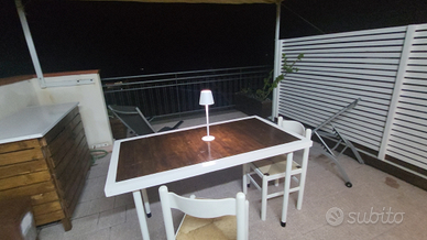 Inoltre terrazzo Panoramico coperto con tenda Ombra dove e' possibile cenare, rilassarsi e stare al sole godendo di un panorama con vista mare. Dotato di salottino, sdraio e lettino Prendisole.