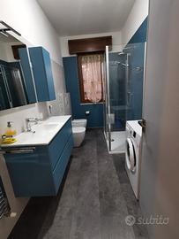 Bagno con doccia e lavatrice, molto comodo per soggiorni di più giorni.