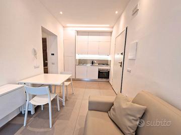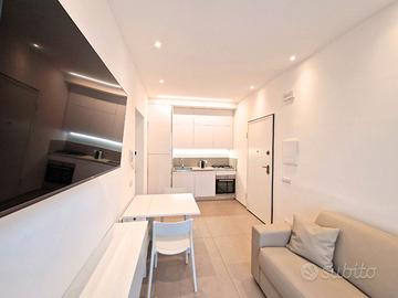 Appartamento nuovo, con aria condizionata e posto auto riservato. E' situato al piano terra rialzato con ingresso indiependente, ed è così composto: