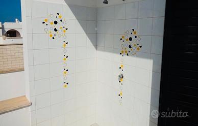 Bella soluzione casa vacanza al primo piano a 70 metri dalla stupenda e finissima spiaggia di Lido marini si puo' andare a piedi in spiaggia, e' composta da 2 camere da letto, una con letto matrimoniale e l'altra con 2 letti singoli, matrimoniale, cucina con divano letto, bagno, veranda attrezzata con mobili da giardino per poter mangiare all'aperto, per un totale di 6 posti letto, zona molto ben servita, ideale per trascorrere le vacanze nel salento e avere tutti i servizi arrivabili a piedi supermercati, ristoranti, pizzerie, tabacchi, pescheria negozi in genere .