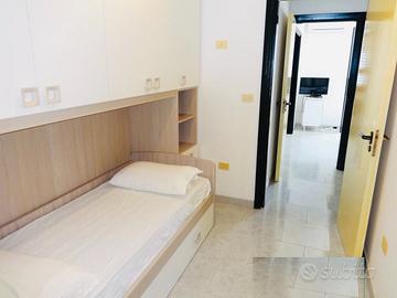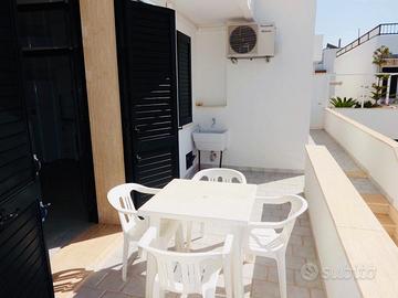 Bella soluzione casa vacanza al primo piano a 70 metri dalla stupenda e finissima spiaggia di Lido marini si puo' andare a piedi in spiaggia, e' composta da 2 camere da letto, una con letto matrimoniale e l'altra con 2 letti singoli, matrimoniale, cucina con divano letto, bagno, veranda attrezzata con mobili da giardino per poter mangiare all'aperto, per un totale di 6 posti letto, zona molto ben servita, ideale per trascorrere le vacanze nel salento e avere tutti i servizi arrivabili a piedi supermercati, ristoranti, pizzerie, tabacchi, pescheria negozi in genere .