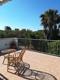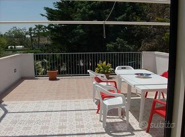 Bellissima casa vacanza al piano primo con condizionatore a 800 metri circa dalla stupenda e finissima spiaggia di Torre Dell'Orso si può andare a piedi in spiaggia, composta da ingresso, soggiorno, cucina, 2 camere da letto, disimpegno, bagno con doccia, bellissimo terrazzo panoramico attrezzato coperto con tenda ombreggiante dove poter mangiare anche fuori in relax utilizzando il barbecue, PER UN TOTALE DI 6 POSTI LETTO. Zona molto ben servita, ideale per trascorrere le vacanze nel Salento e per le famiglie e avere tutti i servizi arrivabili a piedi supermercati, ristoranti, pizzerie, tabacchi, pescheria negozi in genere.