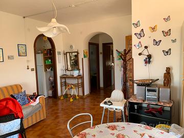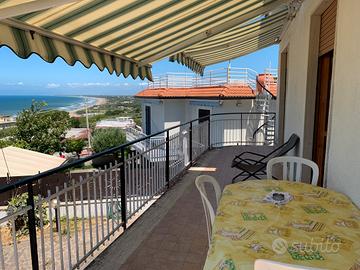 Fittasi casa vacanza al primo piano di una villetta privata, con ingresso privato, 2 posti auto, giardino, doccia esterna, ampio terrazzo, due camere da letto con aria condizionata, 1 bagno, cucina abitabile, ripostiglio con lavatrice, ampio soggiorno. L'appartamento si trova sulla collina San Marco, nei pressi dell'uscita di Agropoli nord, gode di ottima veduta sul mare. Dista circa 600 metri, in linea d'aria, dal mare ed è consigliato l'uso dell'auto per raggiungere il centro di Agropoli.