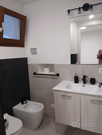 Affittasi intero appartamento per brevi periodi minimo 3 notti composto da 2 camere matrimoniali di cui una con bagno privato più divano letto in soggiorno due bagni , cucina con lavastoviglie, forno ,microonde, macchina caffè clima tv wifi e tutto il necessario asciugamani biancheria ecc. Spazio esterno con tavolo e sedie per poter mangiare all'aperto