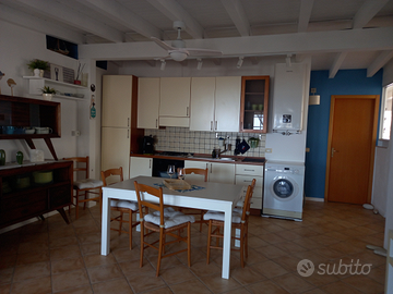 - Ampia luminosa e ventilata cucina attrezzata con zona living, da cui si accede alle terrazze, dotata di ventilatore a soffitto.