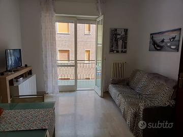 Bilocale al secondo piano con ascensore e parcheggio condominiale interno. Composto da soggiorno con divano letto, cucina, una camera da letto, bagno con vasca e lavatrice e balcone.
