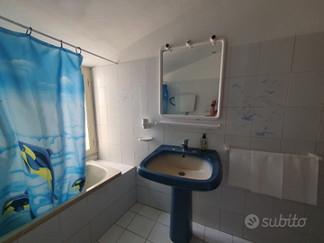 -2 bagni, uno con doccia (1° piano) ed uno con vasca( 2° piano)