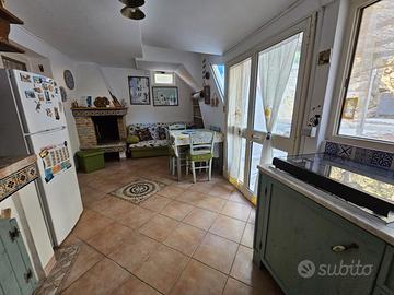 Nella camera da pranzo c'è la disponibilità di un divano letto matrimoniale ed in cucina un divano letto singolo. La casa può ospitare max. 5 persone.