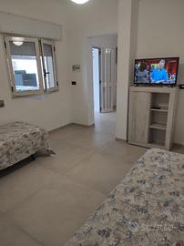 Casa vacanza con grande giardino e posto auto interno a Porto Cesareo in via savonarola 54. Soluzione dotata di ogni confort da 2/4 posti letto ed è composta da una camera matrimoniale, un soggiorno con i letti singoli, una cucina abitabile e un bagno luxury. La disposizione si presta bene a nucleo familiare con figli. Il bilocale è servito da acquedotto pugliese (no pozzo), fornito da cucina attrezzata con stoviglie, lavatrice, frigo, tv, climatizzatore, zanzariere, ferro da stiro, stendibiancheria. L'esterno è attrezzato con doccia, tavolo con sedie, salottino, due sdraio e barbecue, per tranquille colazioni e cene all'aperto. La struttura è sita in zona residenziale, tipologia a villette, tranquilla e fresca. L'area pedonale del centro è raggiungibile a piedi in 15 minuti. Il mare a 600 metri con spiaggia libera e in sabbia. Nelle vicinanze sono presenti i vari servizi: bar-tabacchi, supermercato, pizzeria, ristoranti, disco pub inoltre è presente la fermata della navetta che porta ai lidi attrezzati,(passaggio ogni ora). Il prezzo indicato si riferisce alla media per settimana del mese di giugno. (CIN- IT075097C200065625).