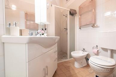 Nel bagno è presente una cabina doccia, bidet e sono presenti asciugamani di 3 diverse dimensioni per tutti gli ospiti, un Welcome Kit con saponi, Shampoo, crema corpo e asciugacapelli.